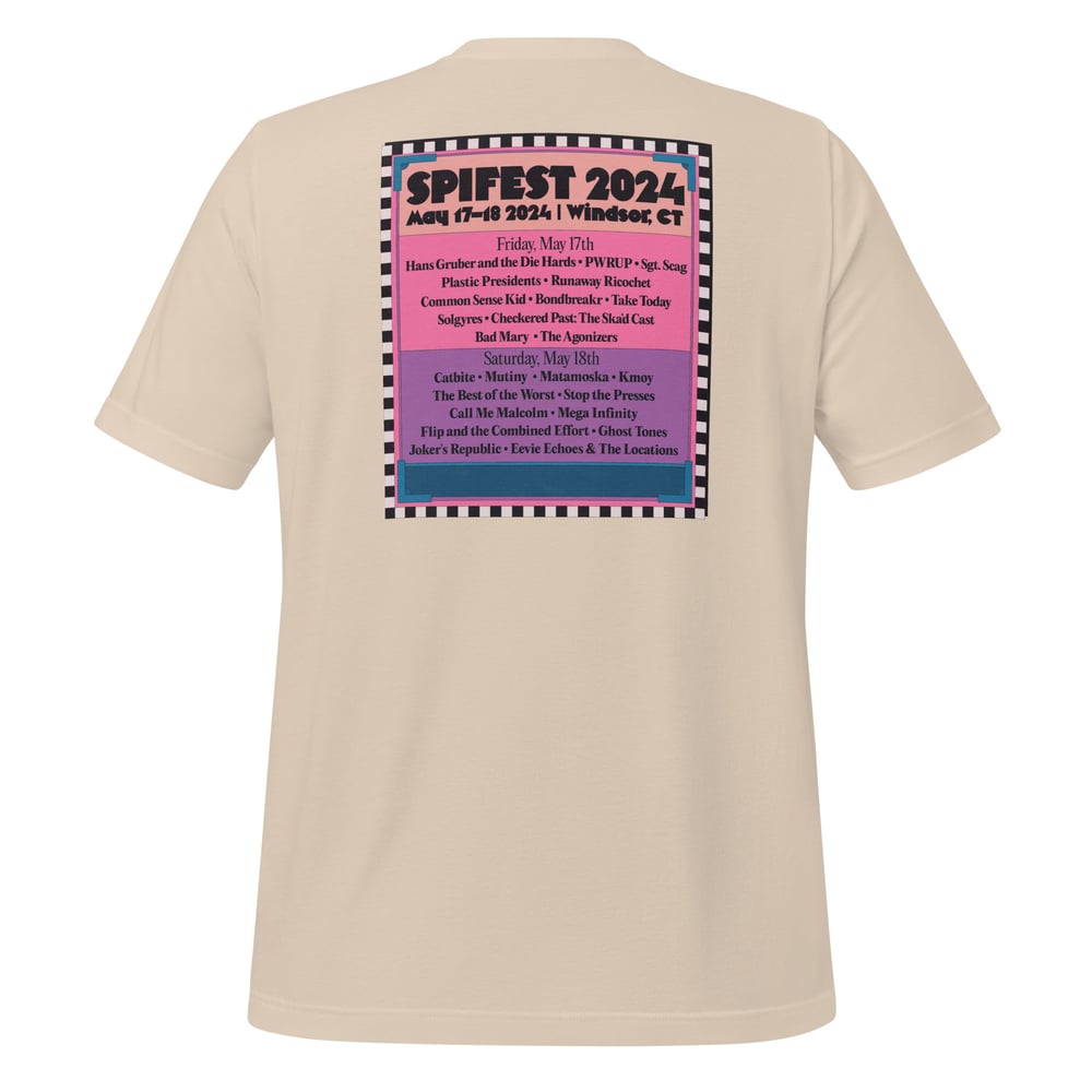 The official SPI Fest 2024 shirt. Available in soft cream, ocean blue and white. Only soft cream available at SPI Fest. Blue and White are online only.